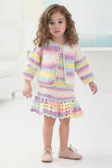 Dress. Finished Chest About 19 (21, 23) in. (48.5 (53.5, 58.5) cm). Finished Length About 14.5 (16, 17.5 ) in. (37 (40.5, 44.5) cm). Cardi. Finished Chest About 21 (23, 25) in. (53.5 (58.5, 63.5) cm). Finished Length About 9 (10.5 , 11) in. (23 (26.5, 28)