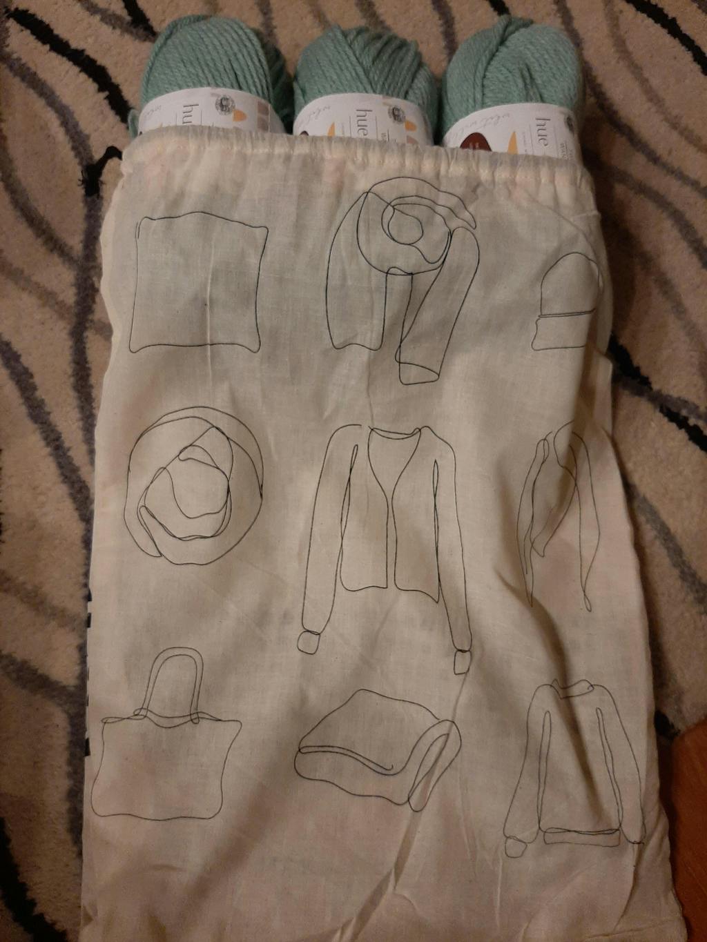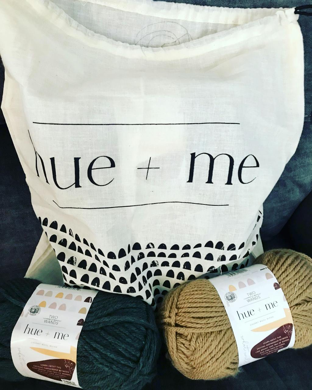 This drawstring bag is a wonderful way to organize your knit and crochet projects while showing your love for Hue + Me, the yarn, craftstyle, and vision of Two of Wands creator Alexandra Tavel! It’s made of 100% cotton, is approximately 15” x 19”, and features contemporary line drawings of garments and accessories. Makes a great gift!