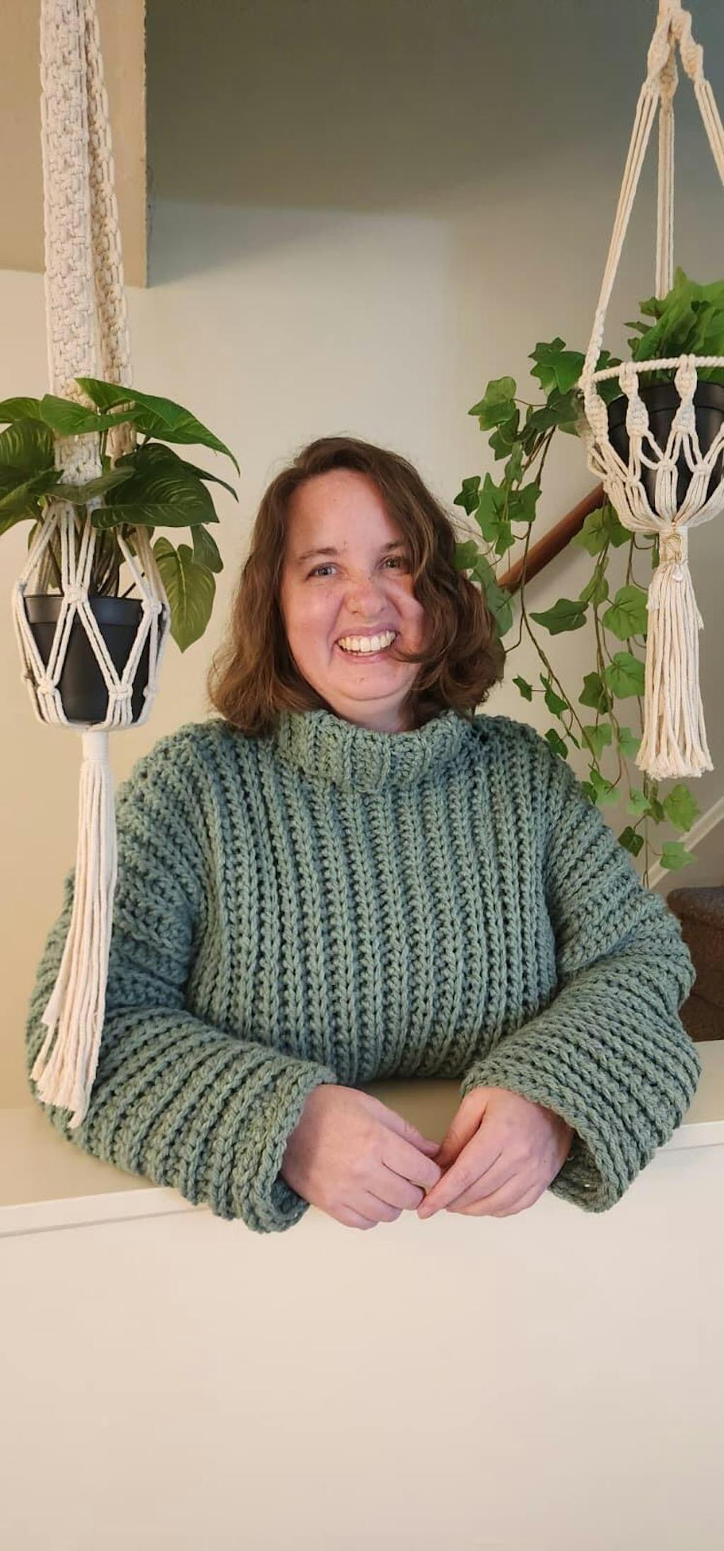 Made a beautiful sweater that worked up so fast! It is so soft and I love wearing it.