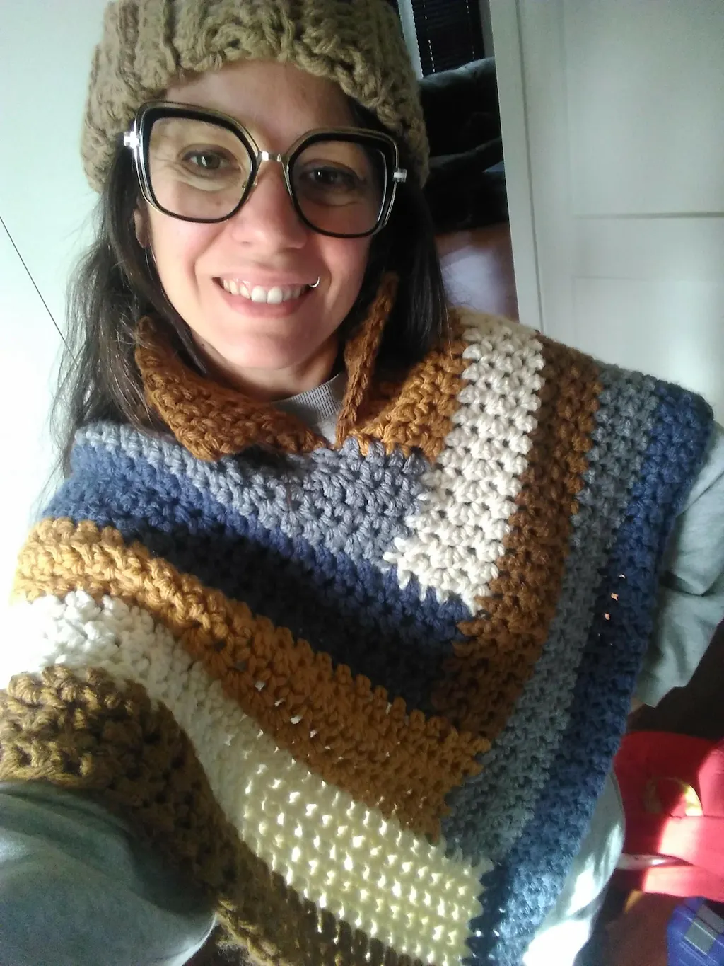 The Kaleidoscope Poncho is a crochet poncho pattern made with bulky weight yarn that has a skill level of easy.