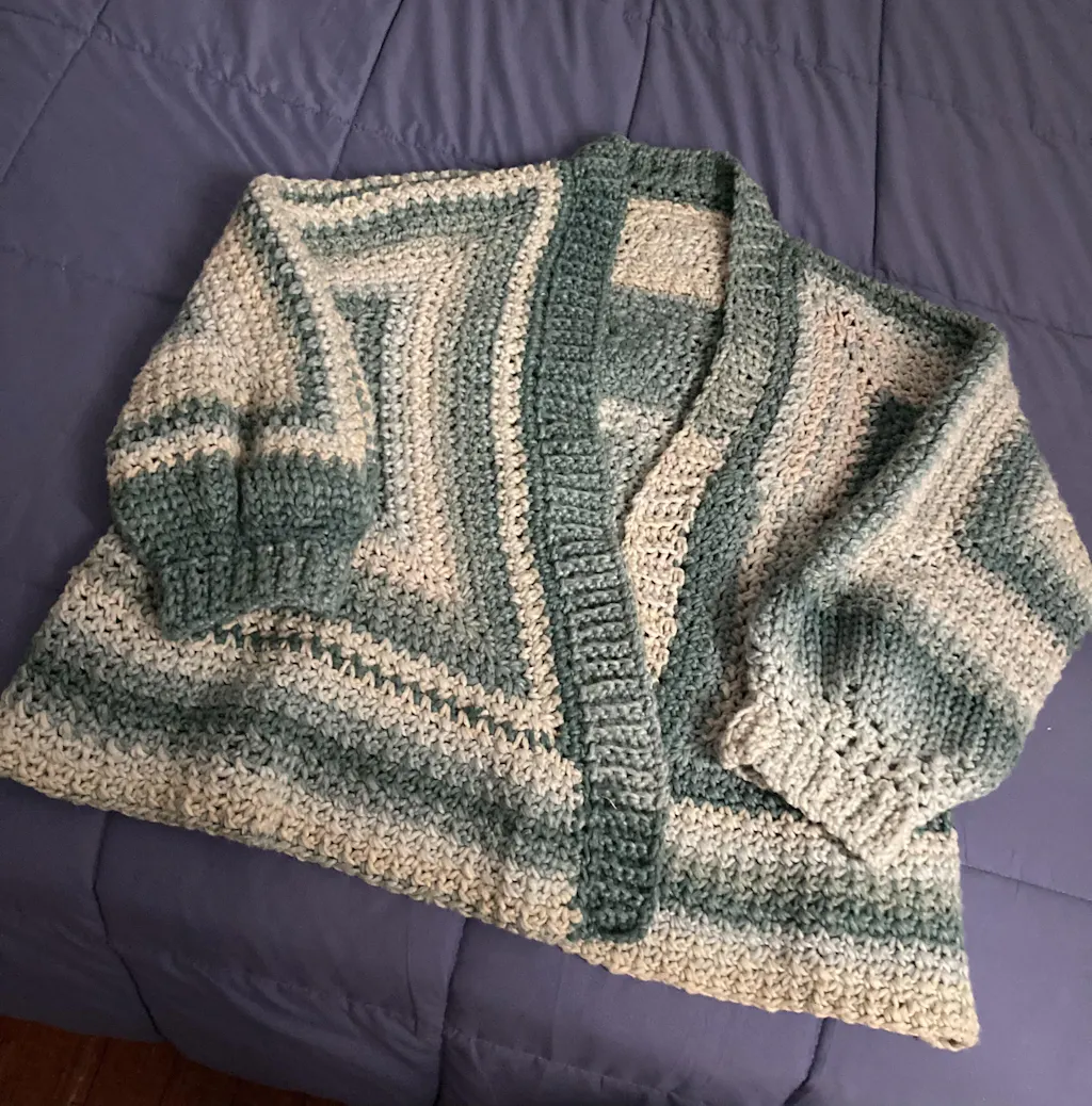 Such a soft squishy yarn! It’s super warm and makes a great sweater. The stitch definition is really prominent, I do think the gradient is a bit random. That makes it a bit difficult to keep the consistency through a project, but if that doesn’t matter it’s completely fine. The center pull was generally easy to find, very little yarn barf. I don’t know that I’d call it a 4 weight, it works up like a slightly bulkier weight. I would really love to see this in more color options. It’s a really great yarn.