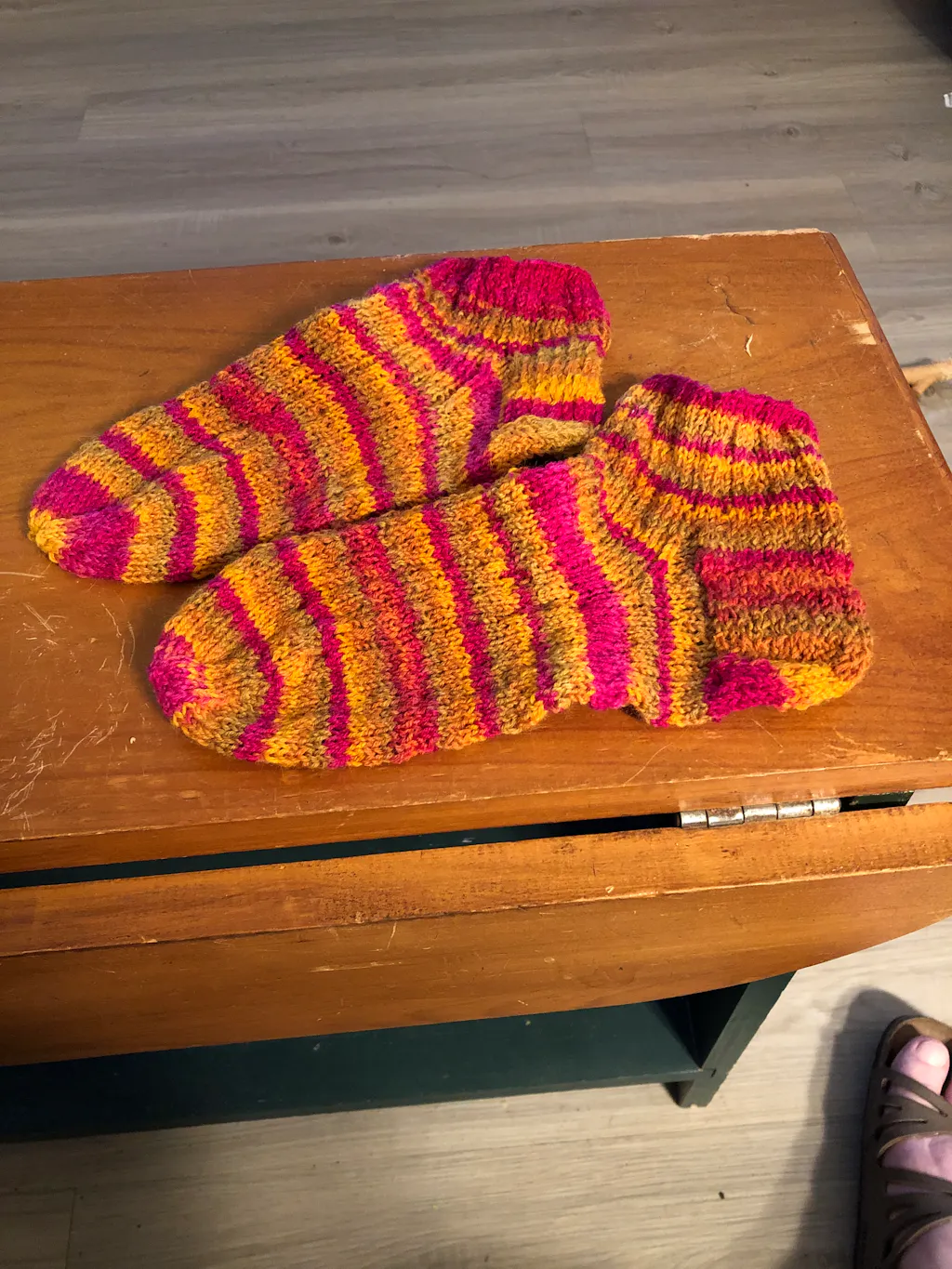 Penelope is a knitted chainette that magically turns into a sock weight by simply unravelling the thread. This 75% wool/ 25% polyamide is perfect for socks, shawls and fingerless gloves. The magical colorations have a hand dyed quality to them - one hank makes an adult pair of socks.