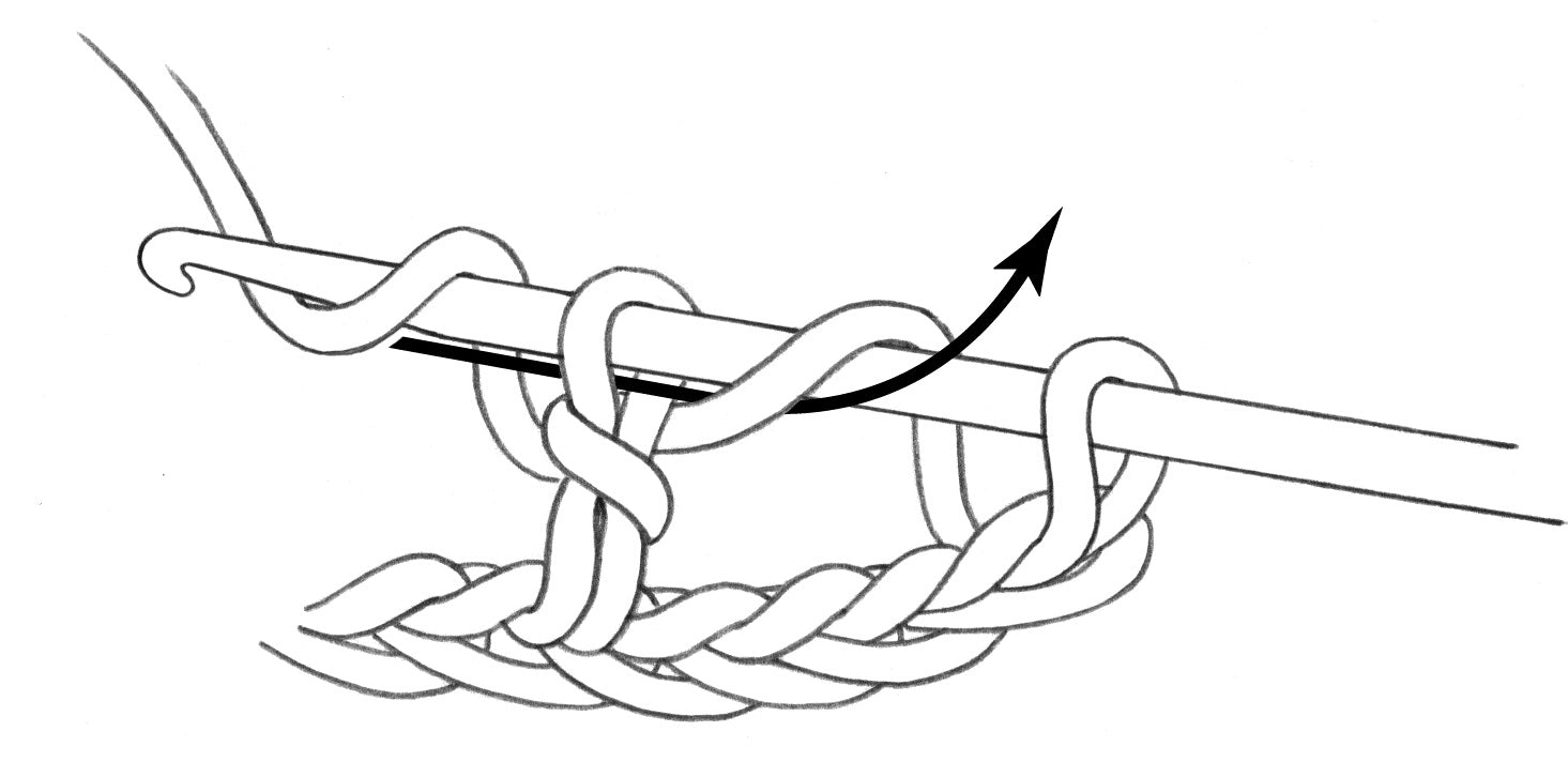 Yarn over, draw the yarn through the chain (4 loops on hook).