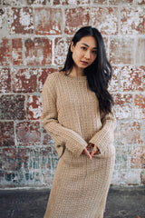 The Alida Place Skirt is a knit sweater pattern made with medium weight yarn that has a skill level of intermediate.