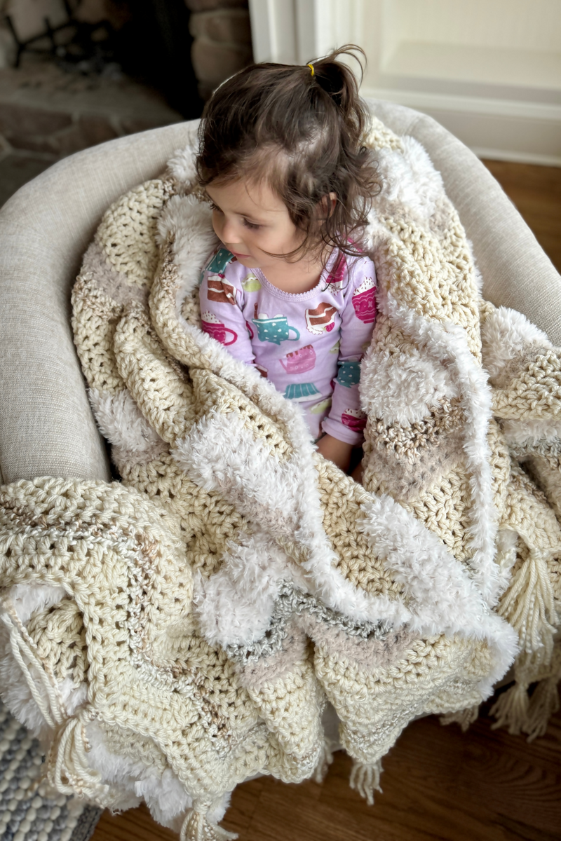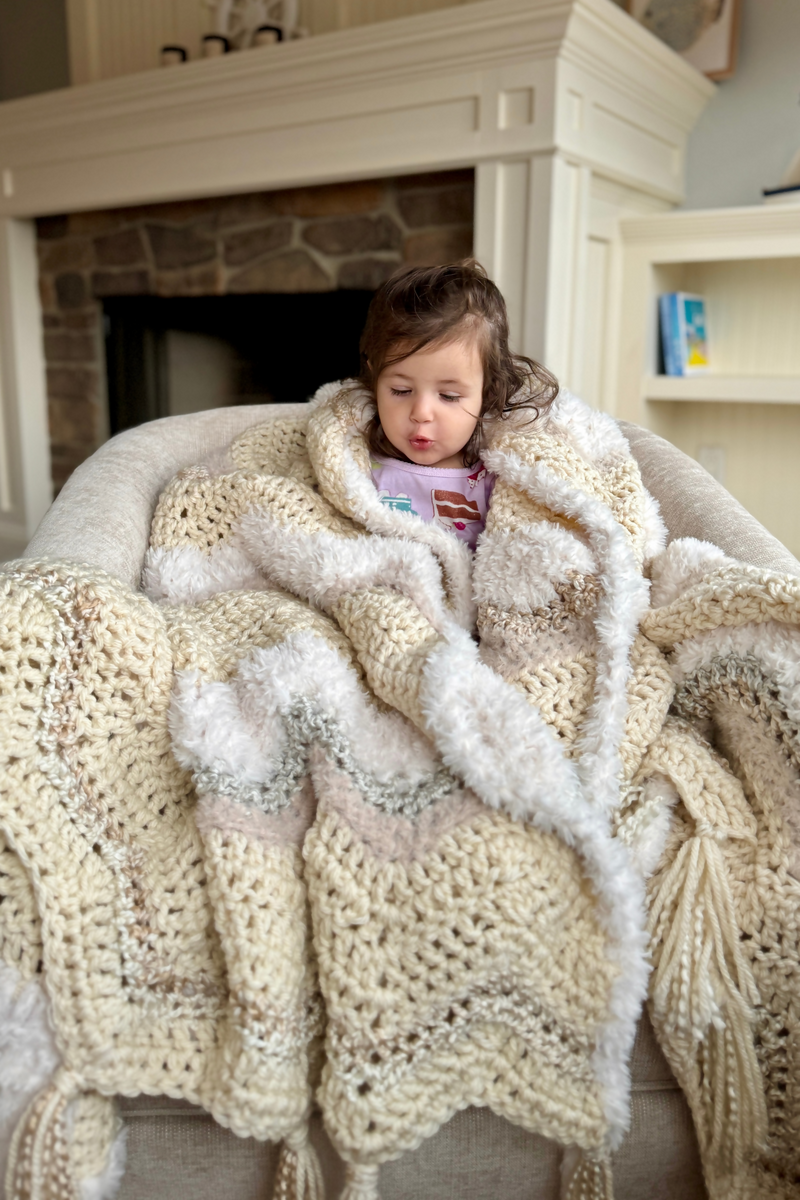 Create your own cozy Beach Road crochet throw. The Beach Road pattern features a stunning combination of yarn textures, making it a visually appealing addition to any home decor. This pattern is suitable for both beginners and experienced crafters, offering a fun and engaging project to work on. The finished throw measures approximately 76" x 59", perfect for snuggling up on chilly evenings. Using a combination of bulky and super bulky weight yarns, such as Lion Brand's Homespun, Go for Faux, Hue + Me, and Feels Like Bliss, this throw is not only stylish but also incredibly soft and warm.