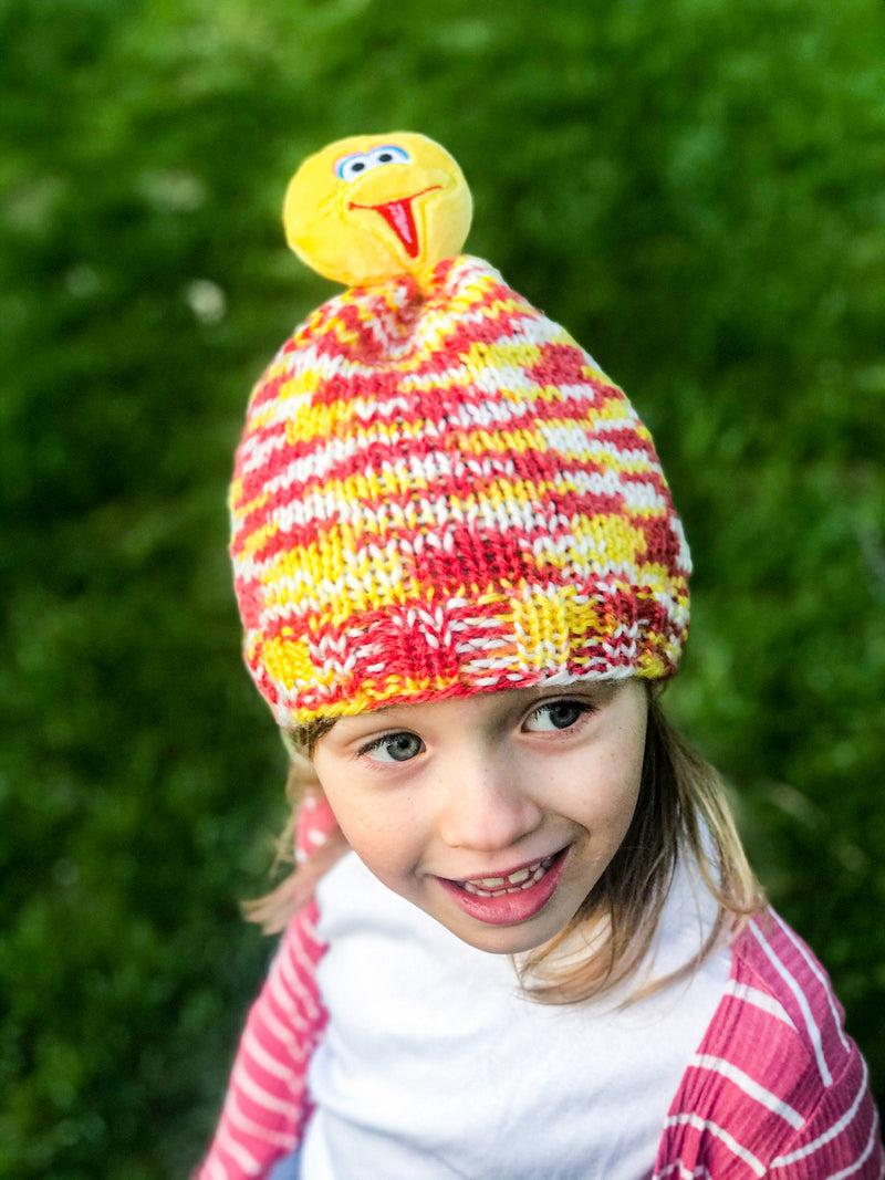 The Big Bird Knit Hat is a knit hat pattern made with medium weight yarn that has a skill level of beginner.