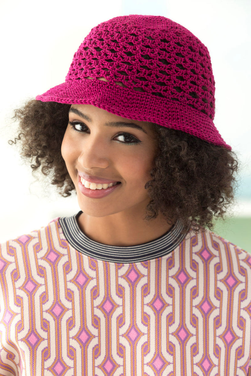 5 pattern reps + 12 rnds = about 4 in. (10 cm) in lace pattern used for sides of Hat. Note: On RS rnds, one pattern rep consists of a sc and the following ch-3 sp. On WS rnds, one pattern rep consists of a sc, and the following ch-1 sp, dc, and ch-1 sp.