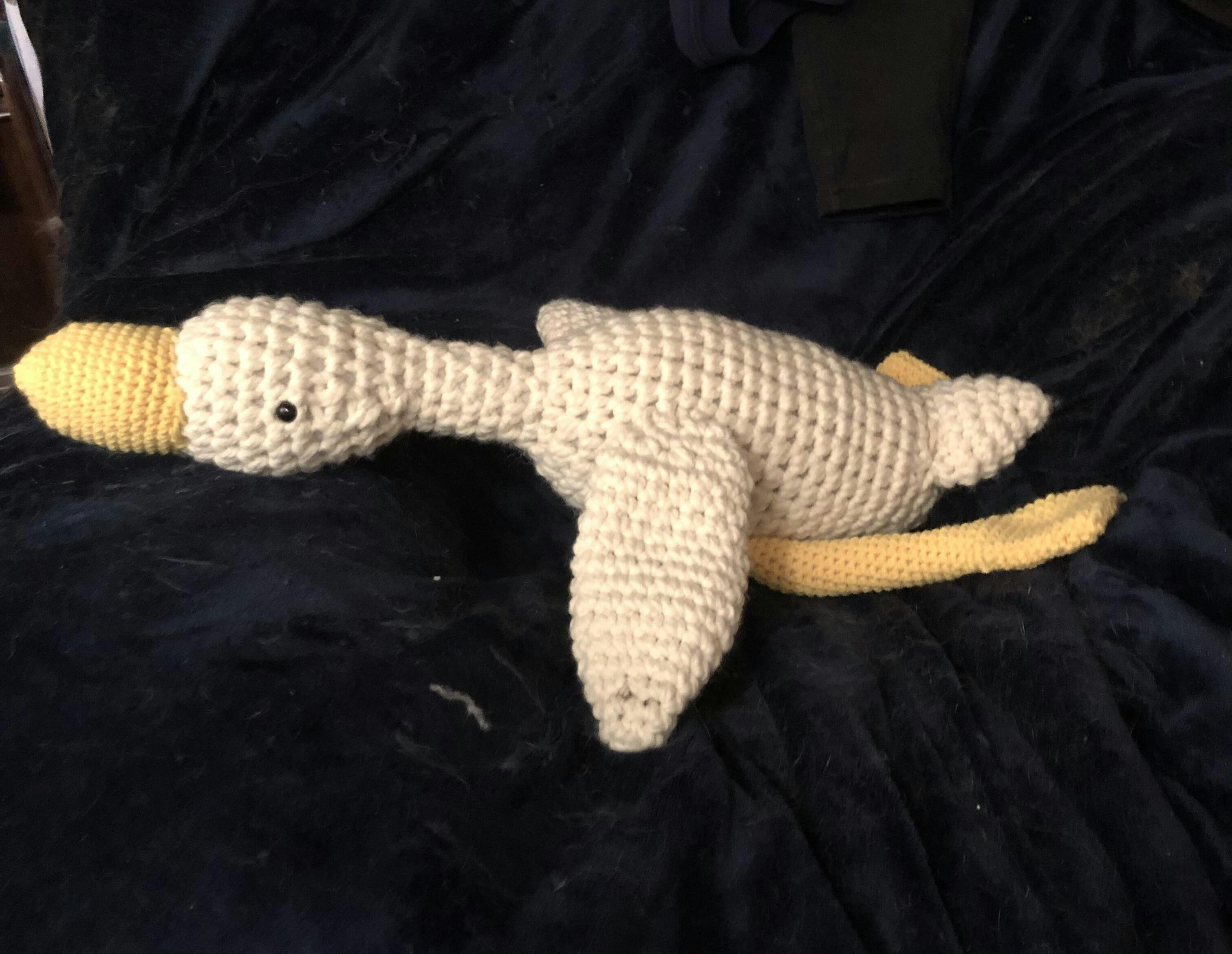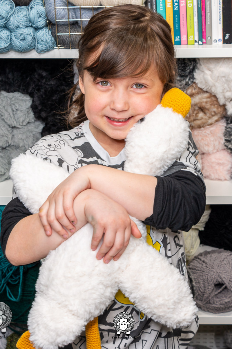 Bruce the Goose is a cuddle-sized crochet goose that is soft and snuggly. This easy crochet pattern is made with faux fur yarn and includes links to video tutorials that contain tips and tricks for working with fur yarn as well as some other techniques used in the pattern.