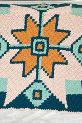 The Sawtooth Star Baby Blanket was inspired by traditional quilt designs, particularly the "Sawtooth Star" quilt block. It is an easy pattern worked in the traditional C2C method and the pattern includes both a chart and written instructions for working the color blocks.