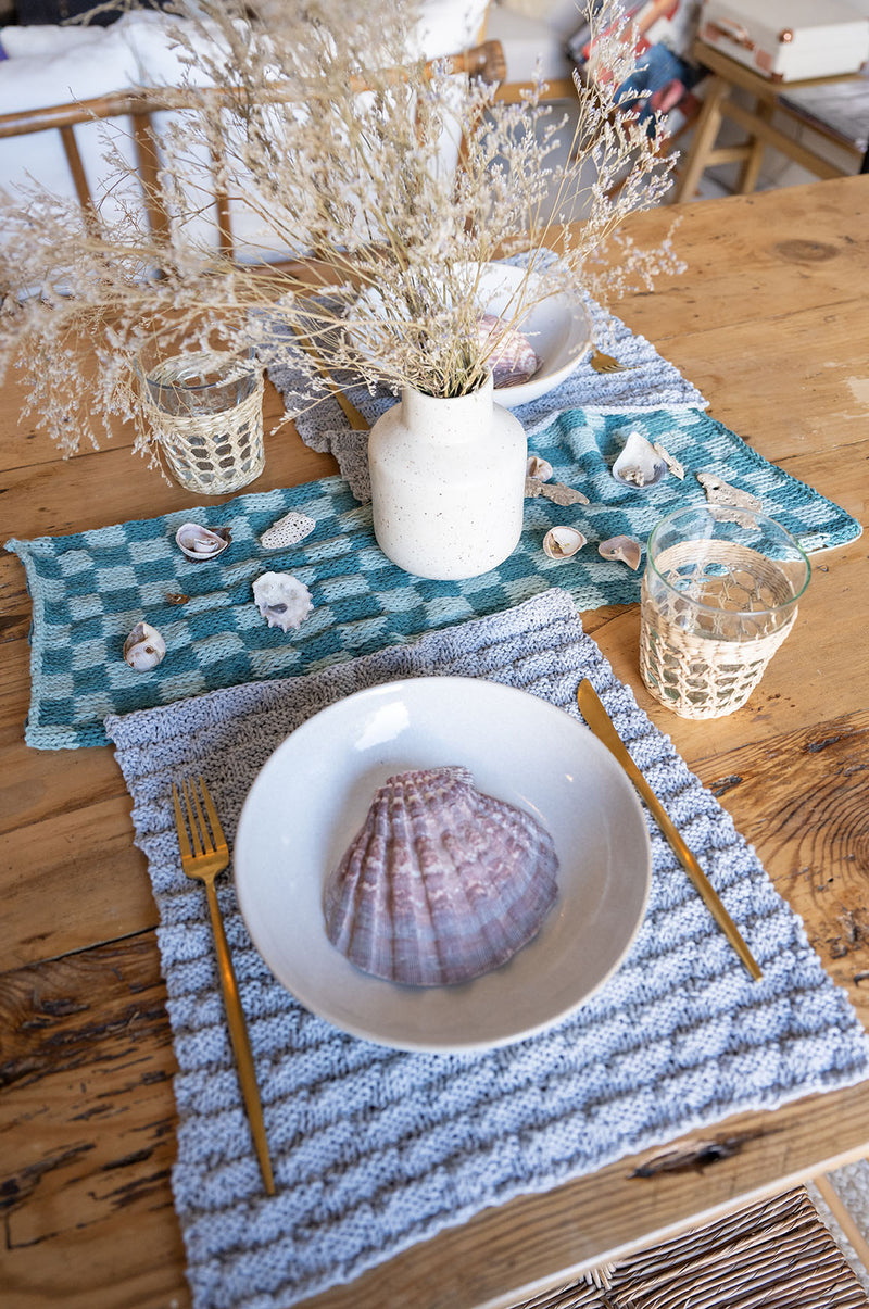 The Cape May Placemat is a knit pattern made with medium weight yarn that has a skill level of easy.