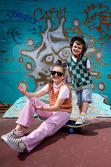 Create a vibrant and cozy child's vest with the Checkmate Vest crochet pattern, featuring a striking checkerboard design. Crafted using Color Theory yarn, this project is both easy to make and care for, perfect for adding a playful touch to your little one’s wardrobe.