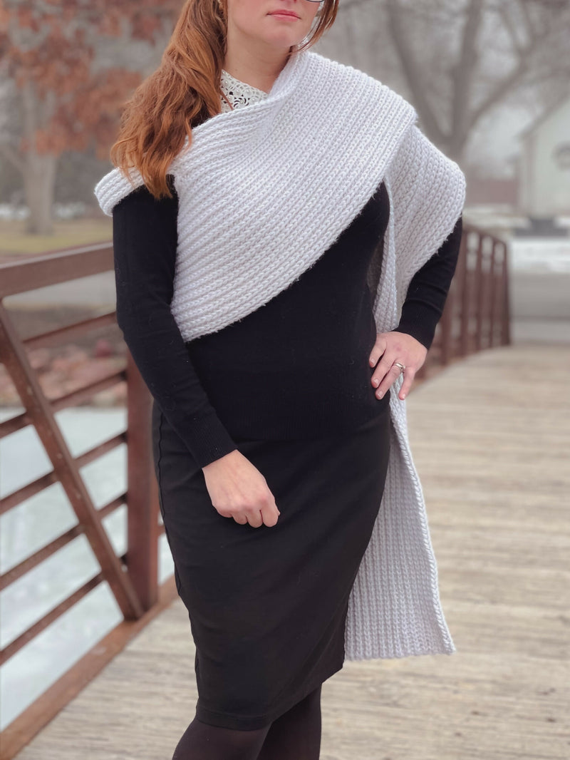 Stay warm and stylish with the Cherish Super Scarf, a beautifully handcrafted crochet wrap featuring built-in armholes for a secure and comfortable fit. Made with soft, bulky yarn, this scarf offers a cozy, ribbed texture that drapes effortlessly over your shoulders, doubling as both a scarf and a shawl. Perfect for layering in chilly weather, this versatile accessory adds elegance and warmth to any outfit. Whether you’re running errands or enjoying a cozy evening out, the Cherish Super Scarf provides both function and fashion.