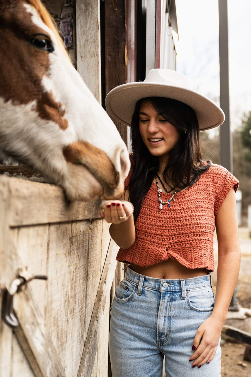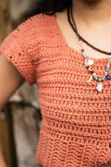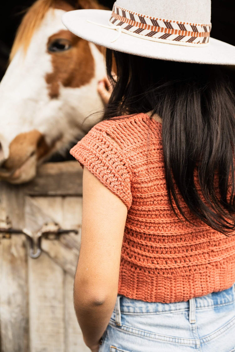 Crochet your way to a fun and flirty look with our Chickadee Crop Tee! This cropped top features a playful twist detail and cute cap sleeves. With its easy crochet pattern, you'll be turning heads and feeling confident in no time. Perfect for any casual occasion!