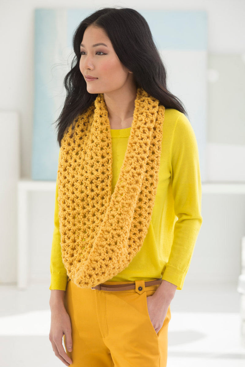The Chunky Cowl is a crochet scarf pattern made with medium weight yarn that has a skill level of easy.