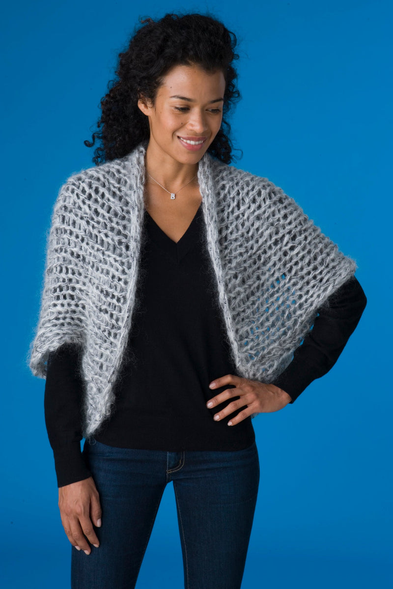 about 27 1/2 in. [70 cm] across. Shrug is very stretchy and will fit most sizes.