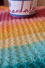 The vibrant shades of Mandala Baby yarn bring a bright and cheerful touch. An ideal yarn for creating a blanket, this soft, #3 weight yarn is both machine washable and dryable, making it as practical as it is beautiful. The lively colors and simple crochet stitches, come together to create a blanket for baby—perfect for cool mornings and chilly evenings.
