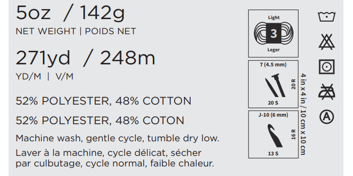 DISCONTINUED: This yarn is no longer available; however, we make this information available as a courtesy to those who still have the yarn.
