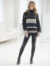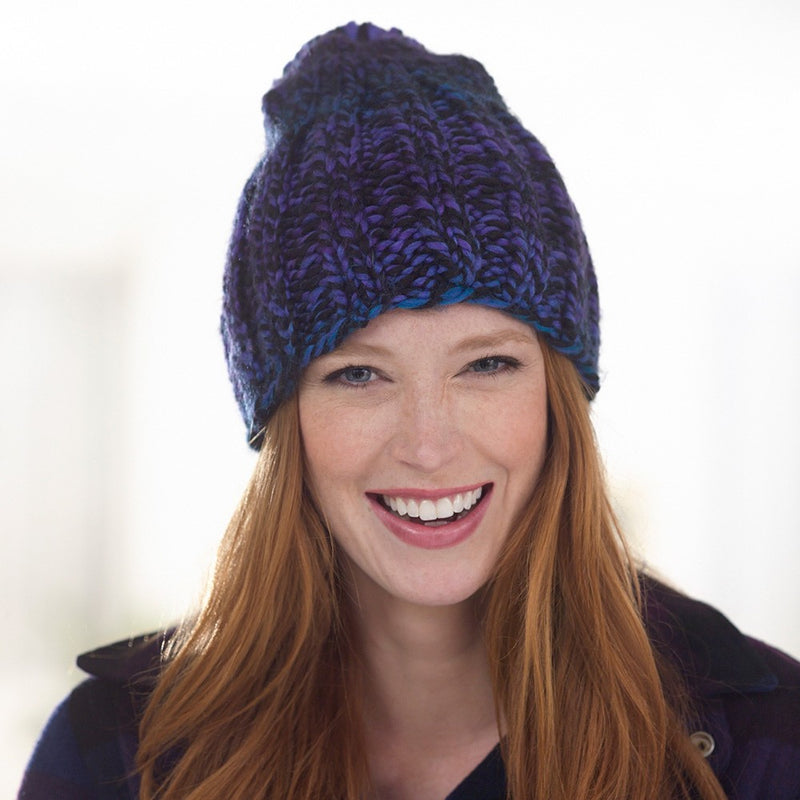 A classic and lofty 2-ply super bulky yarn that's made in America. Featuring a rustic palette reminiscent of the American landscape, this silky roving yarn combines a palette of painterly striping colors with contrasting solid black or off-white shades. This soft, lofty yarn has the look of a hearty wool, and is ideal for fast finish projects, afghans and chunky accessories.