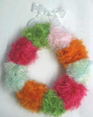 The Tropical Treat Wreath Pattern is a crafts decoration pattern made with bulky weight yarn that has a skill level of beginner.