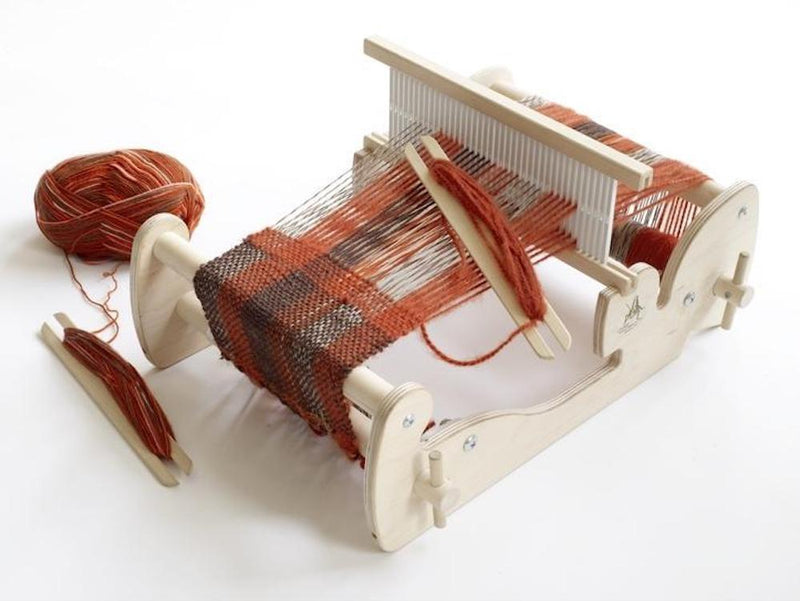 Compact and capable, the Cricket Rigid Heddle Loom from Schacht Spindle Co. has a 10 inch weaving width, giving plenty of room to make a variety of projects without sacrificing portability. It’s an ideal size for a new weaver of any age. The Cricket is made of high-quality maple plywood and hard maple and is left unfinished. Each Cricket comes with everything you need to weave.