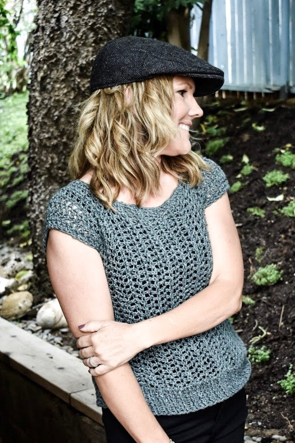 With its Classic cut and waist length, this airy basic Summer Tee is your seasonal go to! Paired with a summer skirt or Jeans, this will compliment any outfit for an effortlessly put together look The Jeans yarn is so soft and light, this Tee is an easy layering piece, while displaying your wonderfully handmade garment. With its simple construction and extra details, it has an intricate look but is a breeze to work up.