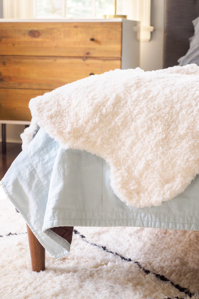 Love the look of sheepskin but not sure about buying the real thing? Why not make your own? Inspired by the concept of crochet rugs, this faux sheepskin is worked up with a crochet base in the shape of a sheepskin, with Go For Faux adding a luscious layer of faux fur on top. The Alpine Sheepskin is soft and drapey, and can be used as both decor or as a small blanket!
