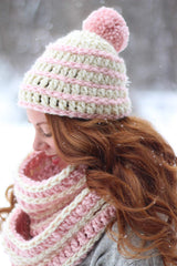 The Après Ski Set is the perfect combo to keep you warm but more importantly, stylish! This set uses beginner friendly stitches and contrasting colors that mimics fresh ski tracks. Put these on for a chic and cozy look after a long day on the slopes or for any cold weather day.