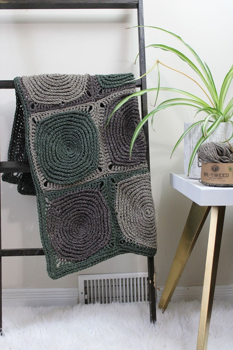 Blanket square = 10” x 10”, finished blanket = 30” x 40”