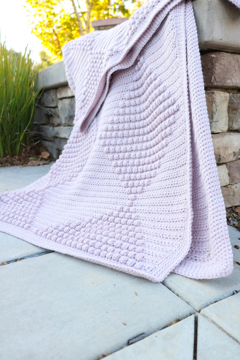 Make a bold and stylish throw with the Bridget Bobble Blanket. The visually interesting design is full of squishy 3D texture and striking triangles. Worked in one piece, to limit ends, this blanket will pull you in with it’s rhythmic back and forth, making it your favorite TV time wip that will turn into your favorite TV time blanket.