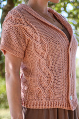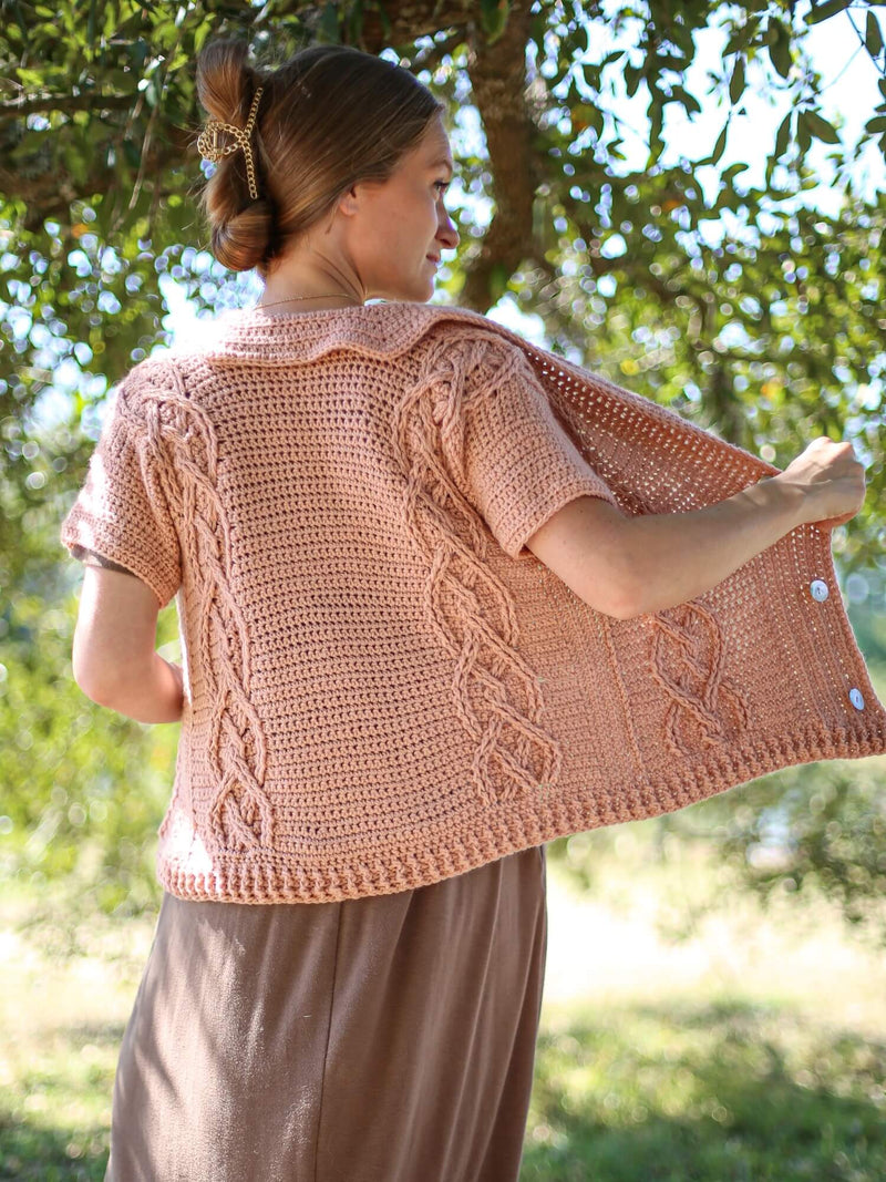 Crochet the perfect collared crochet cardigan with cables that can be styled year round with any wardrobe! This cute short sleeve cardigan can be worn over a tank top or turtleneck and perfect for lazy days, running errands or office meetings!