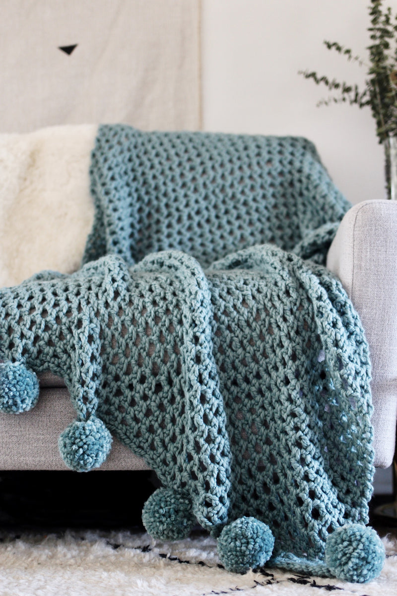 3 ch-2 loops + 4 sc x 6 rows = 4”/10cm in pattern (after blocking)
