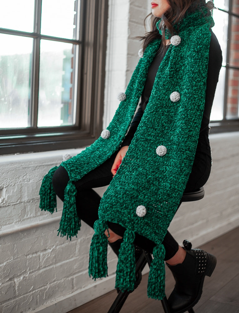 This scarf is perfect for the winter months with its gorgeous drape. Instead of making bobbles, the balls will be made separately, which gives it even more of a dramatic look! And of course, the following touch are the tassels, and a step by step photo tutorial can be found below to make your own!