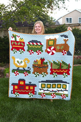This cozy throw will make a great addition to your Christmas holiday décor. The Christmas Train Throw features a passenger car, coal car, present cars, a cheerful red caboose, and peppermint wheels. Stitched in Standard C2C Crochet in bright traditional Christmas colors, you'll enjoy pulling this blanket out year after year.