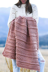 Inspired by the beauty of Colorado and suitable for a Rocky Mountain winter, this blanket will keep you cozy all season long wherever you live. You’ll use simple stitches to create the look of raised braids and crossed stitches to make beautiful eyelets. The chunky wool blend yarn makes for a relatively quick project and the stitch patterns are so much fun. Get ready to welcome chilly nights with your new throw!