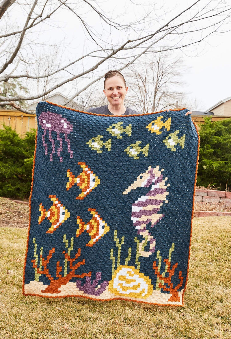 Lucinda is the designer and crafter behind Swish and Stitch. She loves creating, being with her five children and stellar husband, exploring the Colorado mountains, and reading long fantasy novels. She began crocheting as a teenager, but began designing in 2020 after trying a corner-to-corner crochet pattern and loving it. Lucinda especially loves imaginative, distinctive, and unexpected C2C designs—everything from popular culture characters, to one-of-a-kind holiday designs, to math puns.