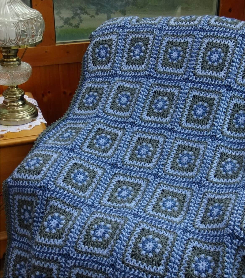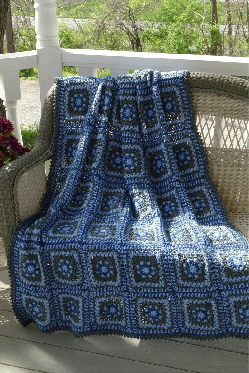 Bring the country charm of an old fashion block style afghan into your home with beautiful blue and gray tones using Lion Brand Jeans yarn.