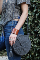 Take your ensemble to the next level with this fashion-forward circular crossbody purse! The round shape is this season’s “it” bag, and with an adjustable strap, front pocket, and tongue closure, your friends will be shocked you made it yourself. Designed to fit all of your essentials for your next adventure.