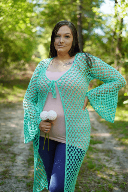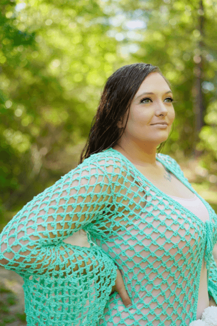 The Diamond's In The Sky Cardigan will be your new favorite summer accessory. The pattern gives you a loose & flowy fit that is perfect for summer weather. You can choose between Sleeveless for a vest version or Big Bell Sleeves for a more dramatic affect. This design has options to customize & truly make this piece fit you perfectly. It is for adventurous beginners and is so fun to make. It features easy mesh stitches to create an open & airy light weight design.