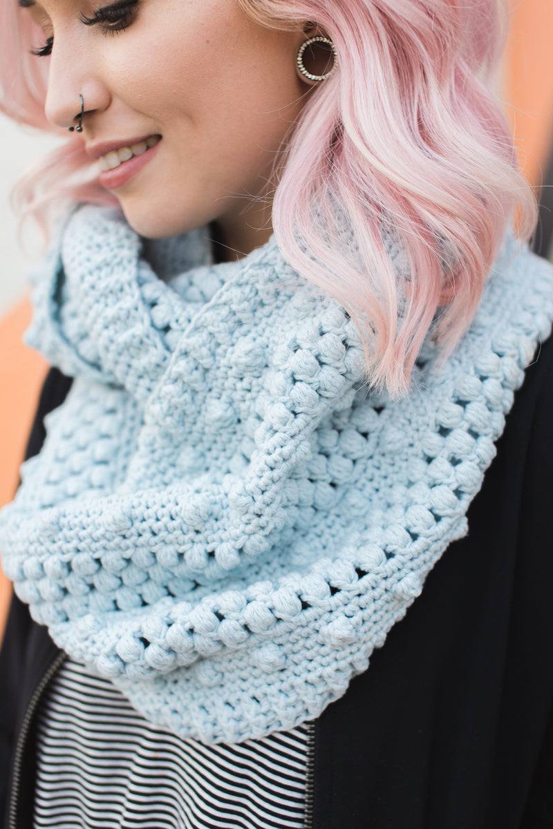 Deliciously cozy yarn… amazingly textured stitches… I mean, seriously. With easy but frequent stitch changes, Dottie Infinity Scarf is the perfect project to keep you interested throughout the whole creative process and leaves you with the perfect accessory for those blistery days - or even just those days you want to flaunt some of your makes. Dottie is about to become your new best friend.