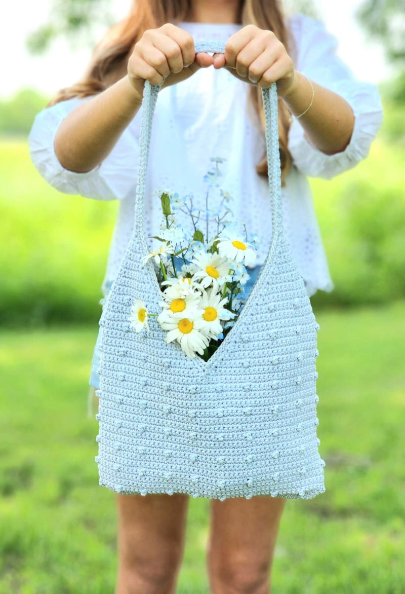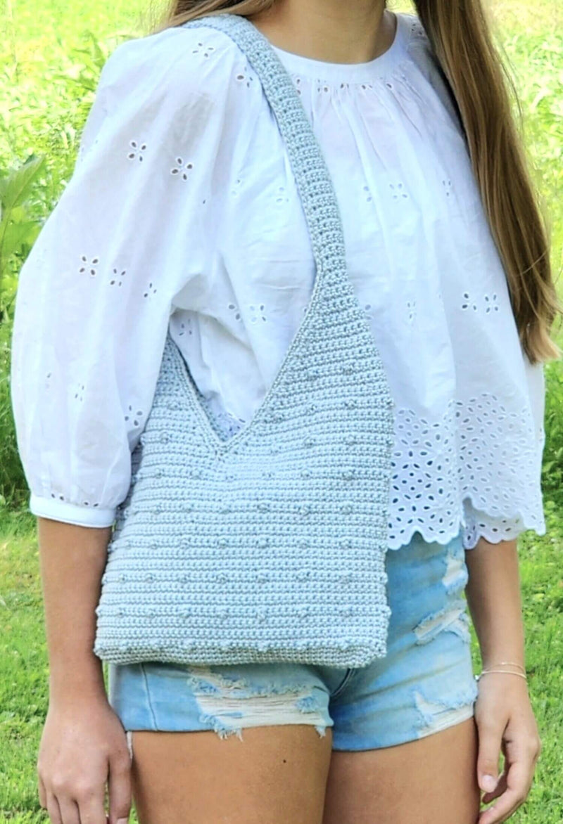 The Dotty Shoulder Bag shows off a pretty polka dot texture in an easy-to-carry shape. It’s crocheted with sturdy, mercerized Lion Brand 24/7 Cotton yarn using simple stitches to create the dots. The roomy size and sturdy shoulder strap make it a great summer bag!