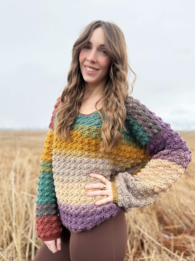 Introducing the Echoes Pullover, a cozy and colorful sister design to the beloved Echoes Cardigan! This pullover features the same stunning color-changing mandala yarn, creating a unique and vibrant look with every stitch. Designed for comfort and style, it has a relaxed fit, a beautiful pop of texture, and an effortless drape. Whether you're lounging at home or heading out, the Echoes Pullover is a perfect layering piece for any season. Plus, with an included video tutorial, you’ll have all the guidance you need to bring this gorgeous design to life!
