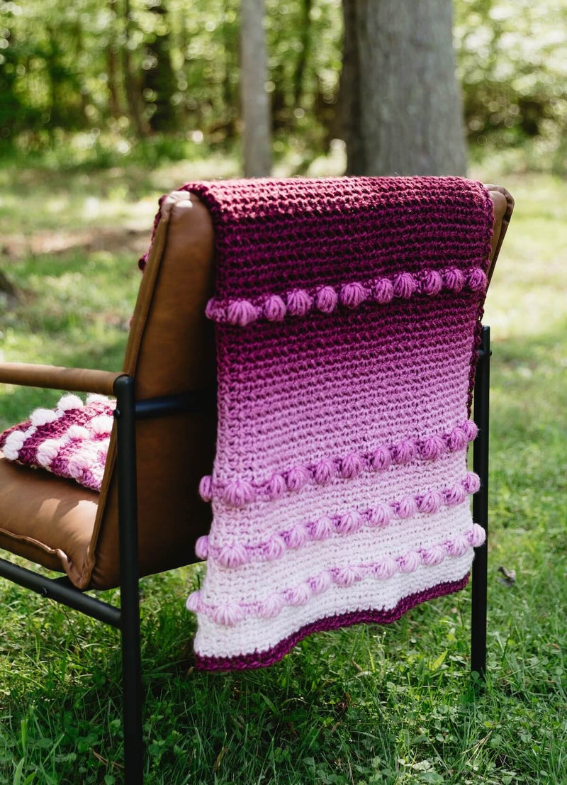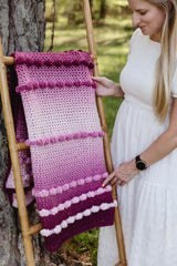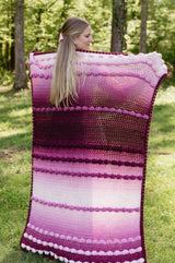The Evergarden Blanket is a colorful crochet design that comes in three sizes: baby, lapghan, and throw. It uses gradient-colored yarn to create striking pops of color that resemble tulips blooming across the fabric, giving the blanket its garden-inspired name. Finished with an interesting and textured border, this pattern also includes a full video tutorial to guide you every step of the way.