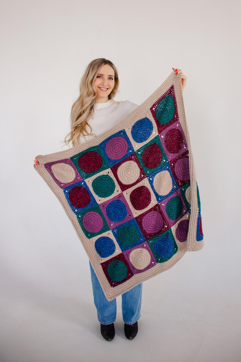 Each square of this sample was crocheted lovingly while caring for my baby, so a name reflecting that experience only seemed fitting. Each of these adorable squares is worked individually, making it an ideal on-the-go project. Crochet 25 granny squares at your own pace to create a cheerful heirloom baby blanket or as many squares as needed to reach your desired size.