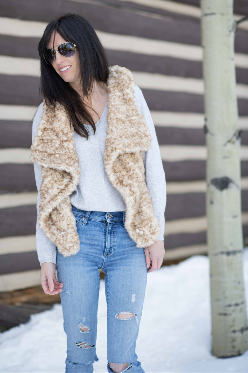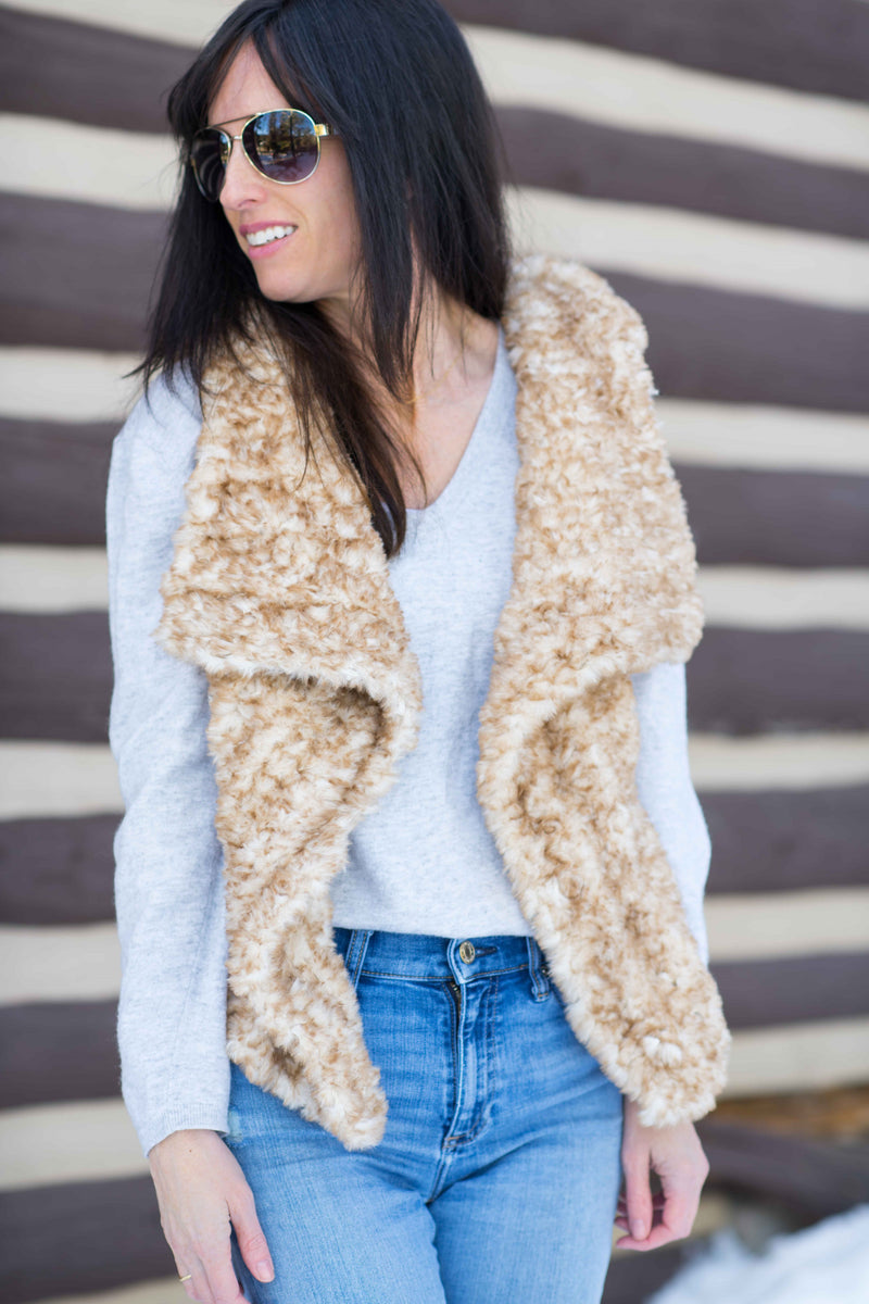 This incredibly soft faux fur vest makes a cozy and fashionable accessory for any winter outfit. Wear it with your sweater dress or pair it with jeans and a flannel top for an ultra-casual, comfortable look. You’ll find that it’s made with basic crochet stitches and includes minimal shaping so it’s great for beginners and experienced crochet artists alike.