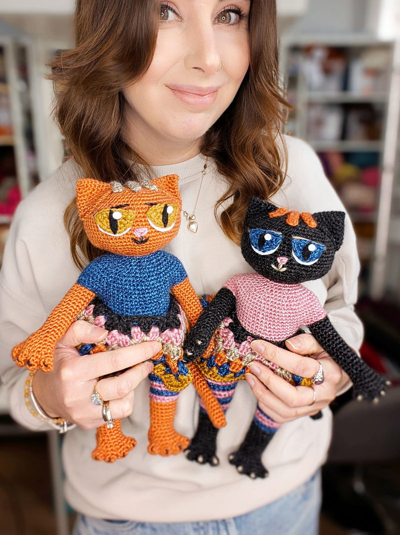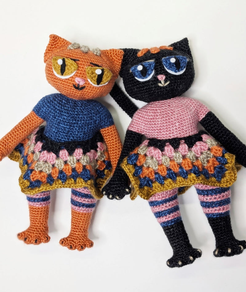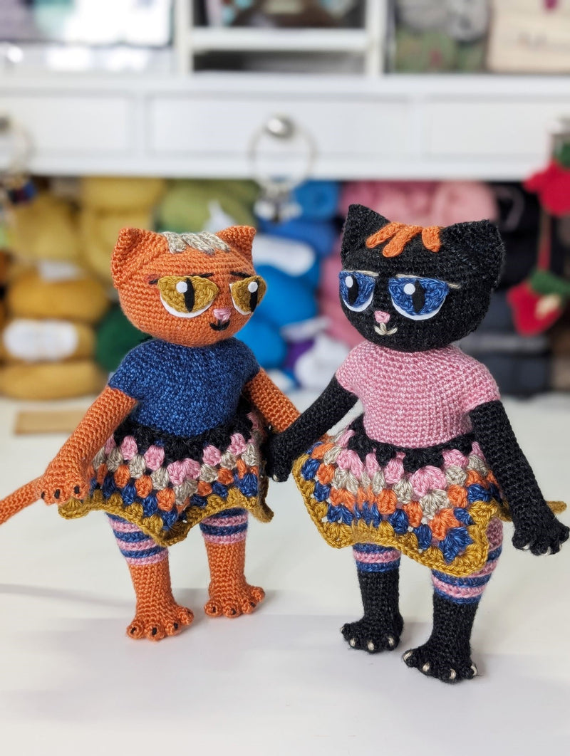 Meet Fiona and Philomena! These low-sew kitties are made with pieces joined with single crochet stitches as the work progresses which means less sewing! Finish each kitty with an adorable matching Granny-Stitch skirt, and enjoy some cute cuddles with Fiona and Philomena!