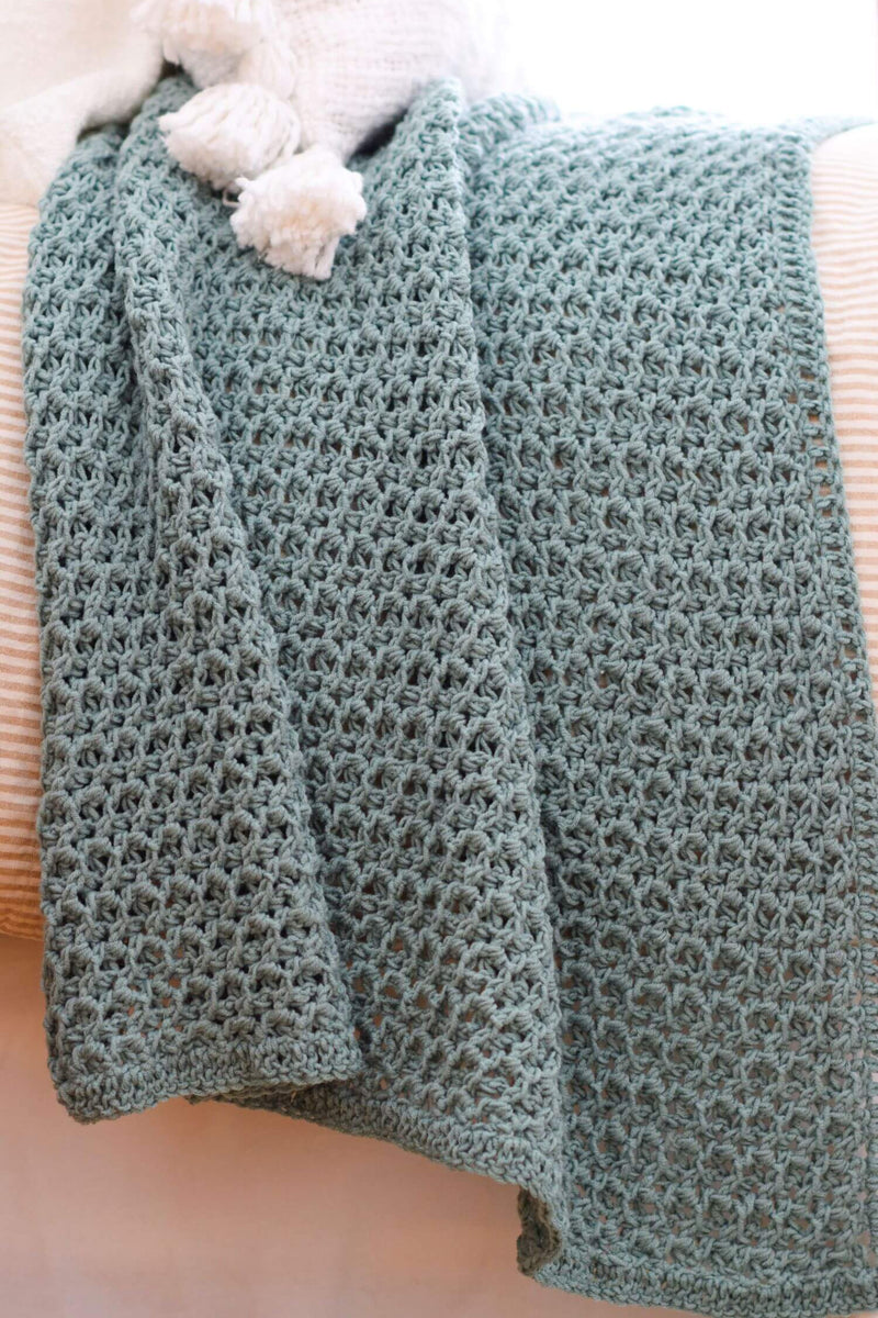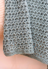 This beautifully unique pattern creates a texture that’s squishy, eye catching, and feminine. Special enough to make as a christening blanket, and practical enough to make as an everyday throw, you will love the knit look of this reversible cuddler. A one row repeat makes this a meditative project and it’s perfect for year round crocheting. Available in child/lapghan and larger throw blanket sizing!
