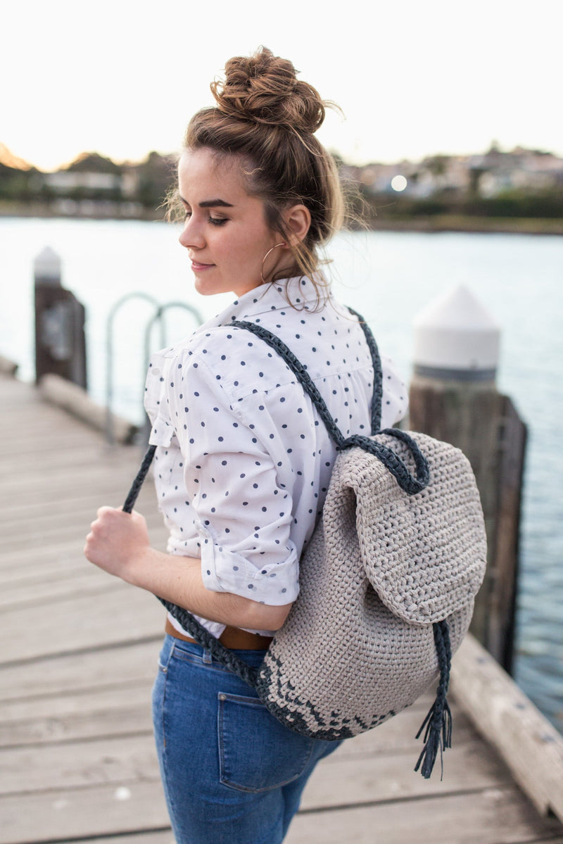 Carefree and lightweight, the Florence Backpack taps right into all the excitement of an impending trip… With every stitch, how can you not imagine all the spur-of-the-moment places this carryall bag will travel! Crocheted holding two strands of yarn together for extra shape and stability, this roomy bag is the ideal size to fit all your daily essentials. Whether you're enjoying a picnic in a field or out for the weekend, the backpack's drawstring closure will keep your valuables secure whilst the sturdy shoulder straps will ensure it's super comfortable to carry… Giving this easy-going bag its effortlessly relaxed feel.