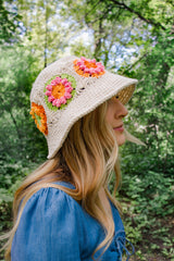 There are no bad hair days with the Flower Market Bucket Hat. This fun, feminine design will add a whimsical, vintage feel to any summery outfit. A playful granny square panel spans the circumference of this hat, bringing a pop of color to an otherwise simple design. Named “Flower Market” since picking the colors for each flower feels like picking your floral bouquet at a flower market!