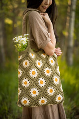 Granny Square: 3.75” /9.5 cm x 3.75”/9.5 cm; diagonal is 4.75”/12 cm