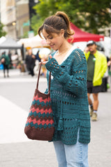 Perfect for both beginners and experienced crafters, the Harlequin bag features a colorful diamond pattern. With an easy to follow pattern this tote is fun to create and style. 24/7 Cotton yarn and an F hook produce tight stiches, making sure your items are secure in your new favorite summer accessory.
